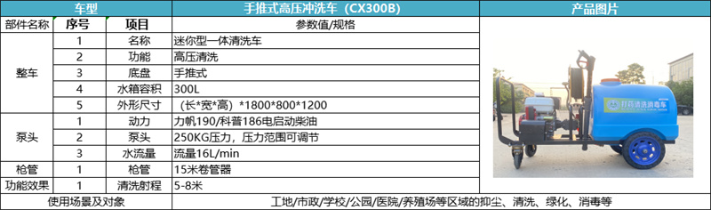 阿勒泰坦洁手推式高压冲洗车CX300B